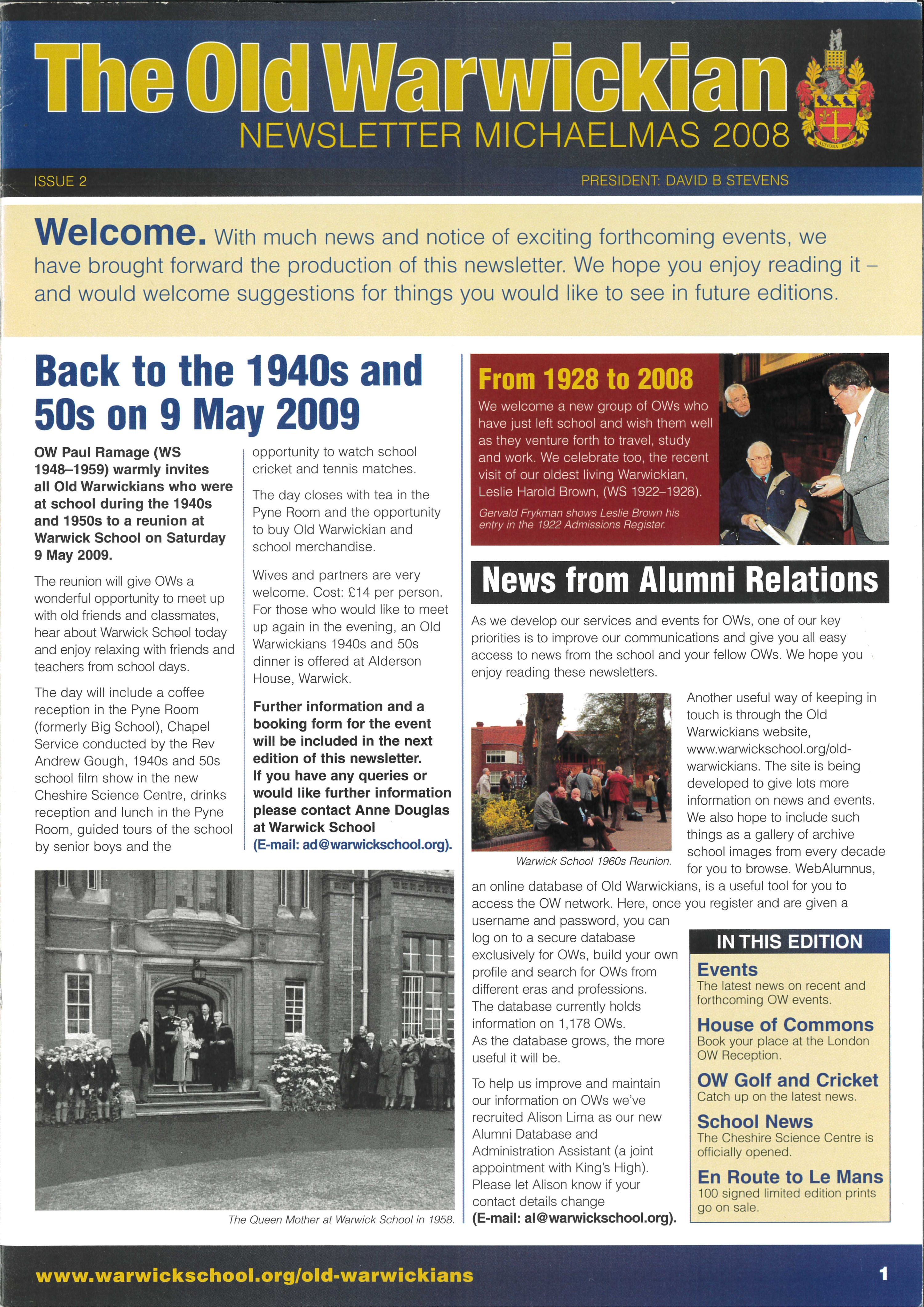 The Old Warwickian Newsletter, Michaelmas 2008