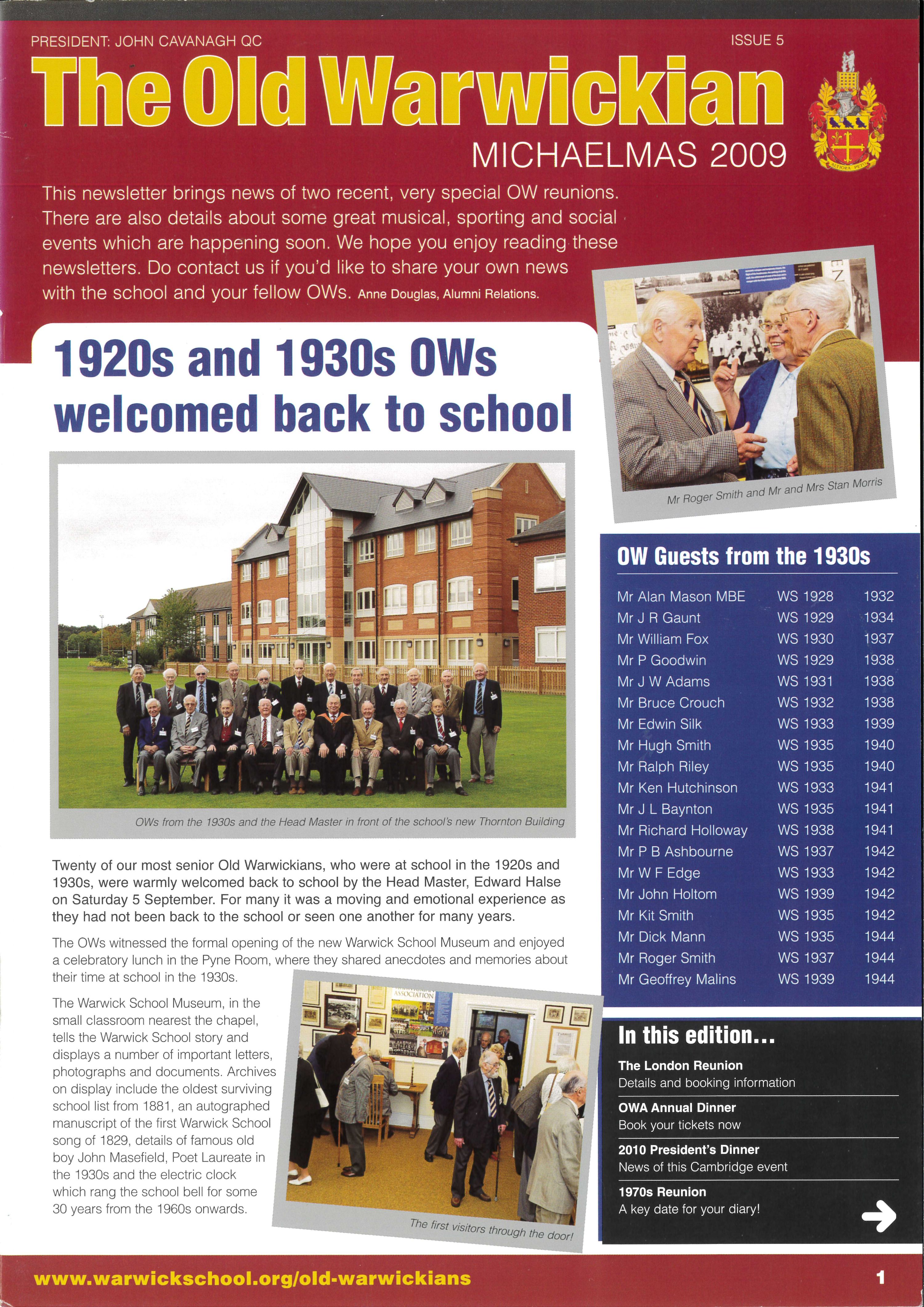 The Old Warwickian Newsletter, Michaelmas 2009